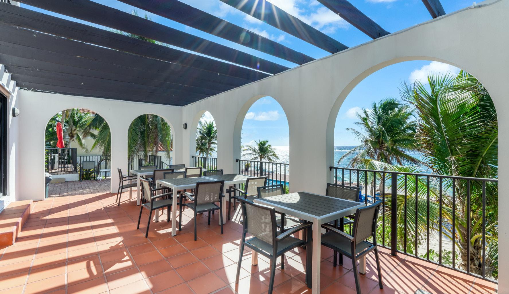 Turnkey East End villa with ocean views, beach access, open layout, balconies, and resort amenities—steps from snorkeling and diving.