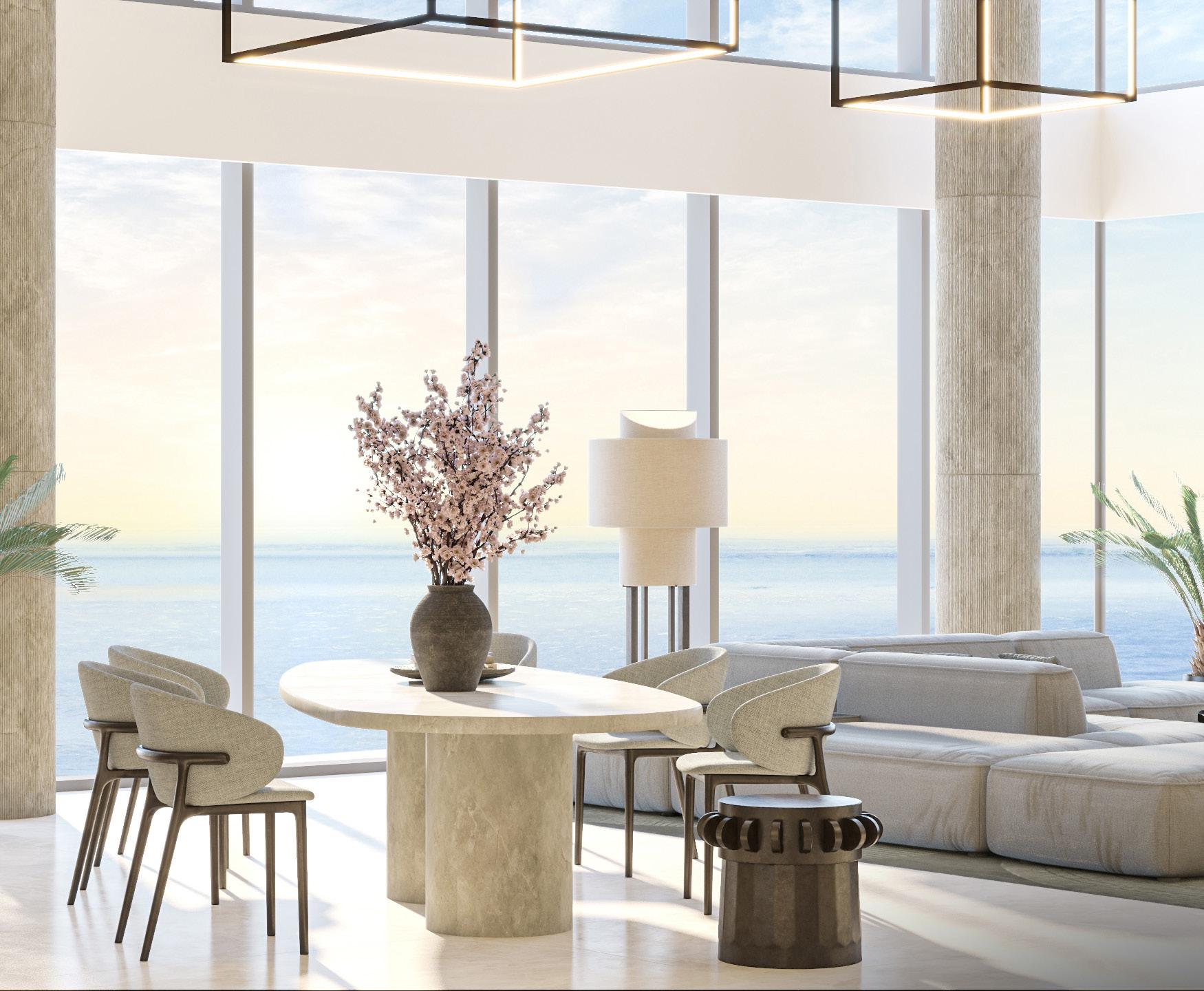 Property amenities and 5 Star services include expansive fullservice Seafront lounge with owner’s oenotheque, refined library lounge, on-property chefs, private dining rooms, expansive boardroom, private cinema, state-of-the-art fitness studio, exclusive private trainer, guest suites, valet, and property vehicles with chauffeured service. Owners enjoy onsite access and founding memberships to a 16,000 square foot luxury spa and future fine dining restaurant.