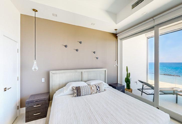 • Master bathroom has sea view, floor-to-ceiling windows with switch-activated opaque film to ensure privacy
