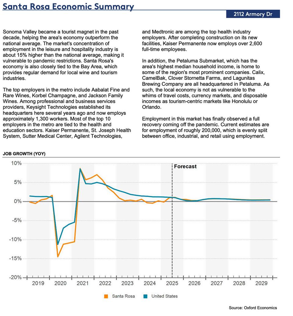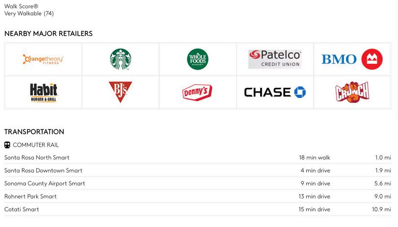 With a Walk Score of 74, the location is rated "Very Walkable," offering convenience for employees and customers alike. It is just 1 mile (18-minute walk) from the Santa Rosa North SMART station, 1.9 miles (4-minute drive) to Downtown Santa Rosa, and 7.5 miles (approximately 12-minute drive) to Downtown Windsor. The Charles M. Schulz–Sonoma County Airport is also conveniently located just 6.6 miles (11 minutes) away.