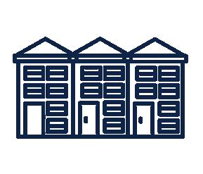 An owned unit in a row of houses all attached to one another. Often has an association fee that covers shared monthly expenses for the upkeep of the exterior and any shared facilities.