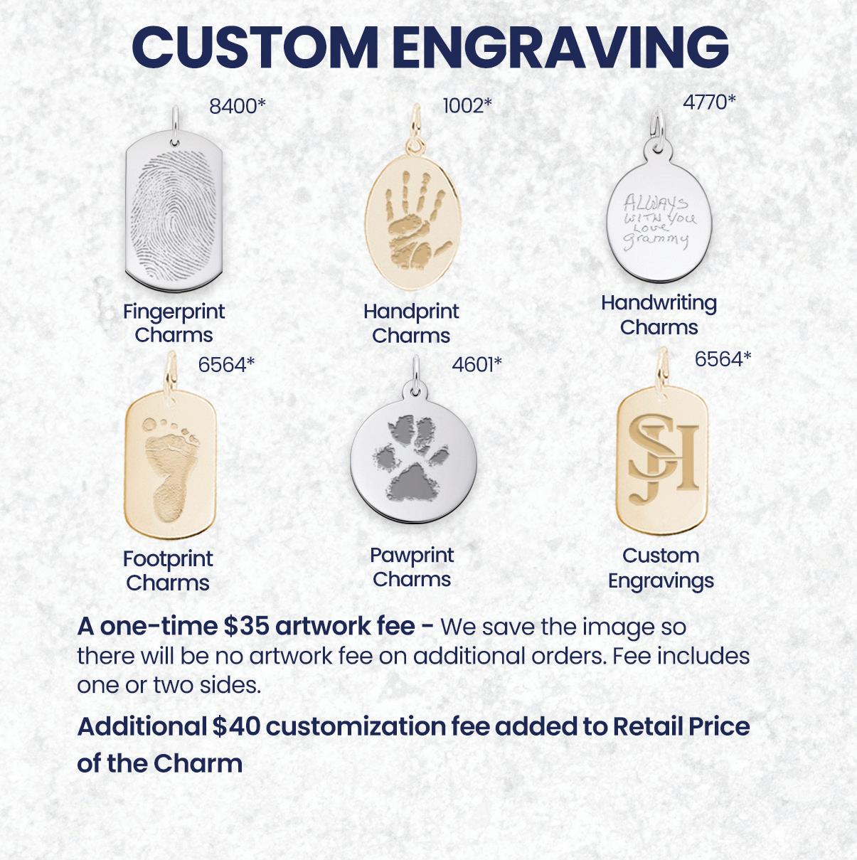Each charm comes with a Lifetime Warranty and is available in Sterling Silver, Gold Plate, 10 and 14 Karat Yellow Gold, and 14 Karat White Gold. All Sterling Silver merchandise is Rhodium Plated to prevent tarnishing.