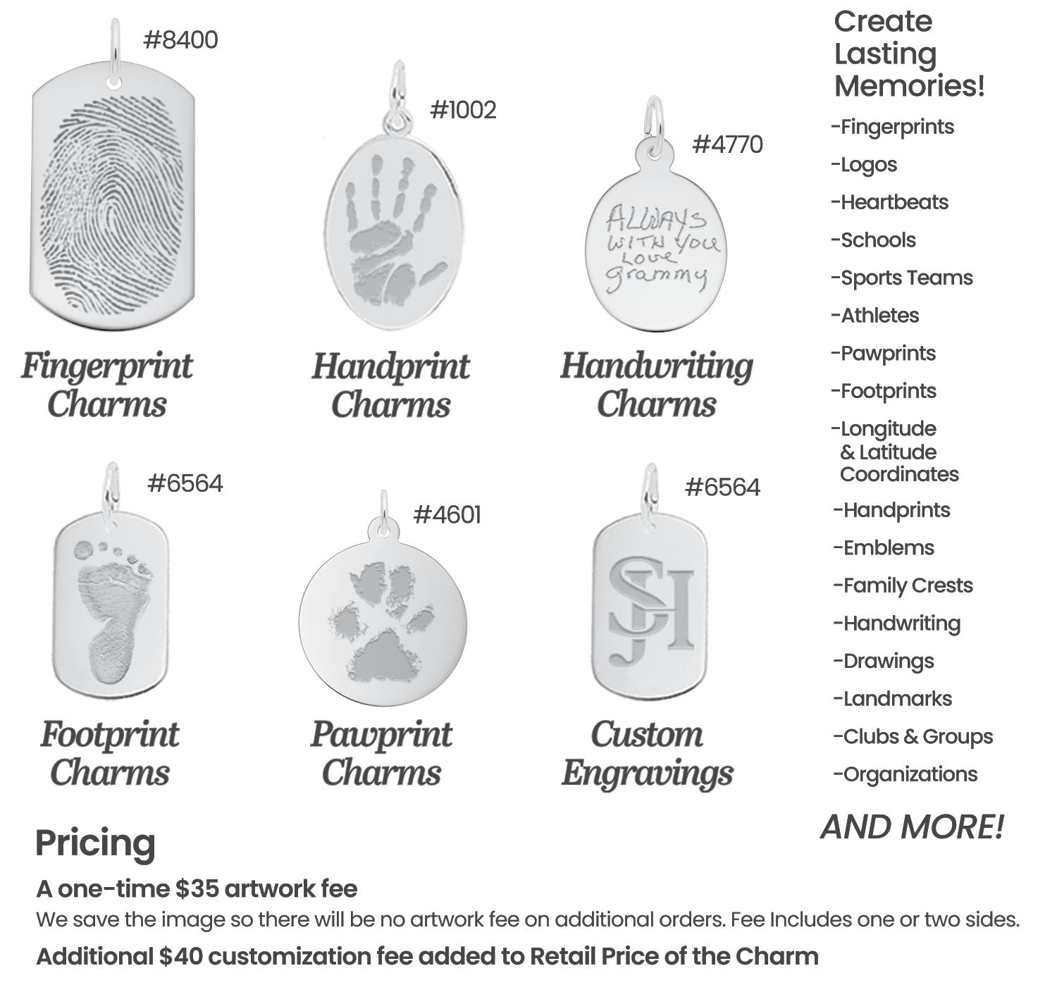 All charms noted with an asterisk(*) in the catalog may be engraved. Call for pricing.
