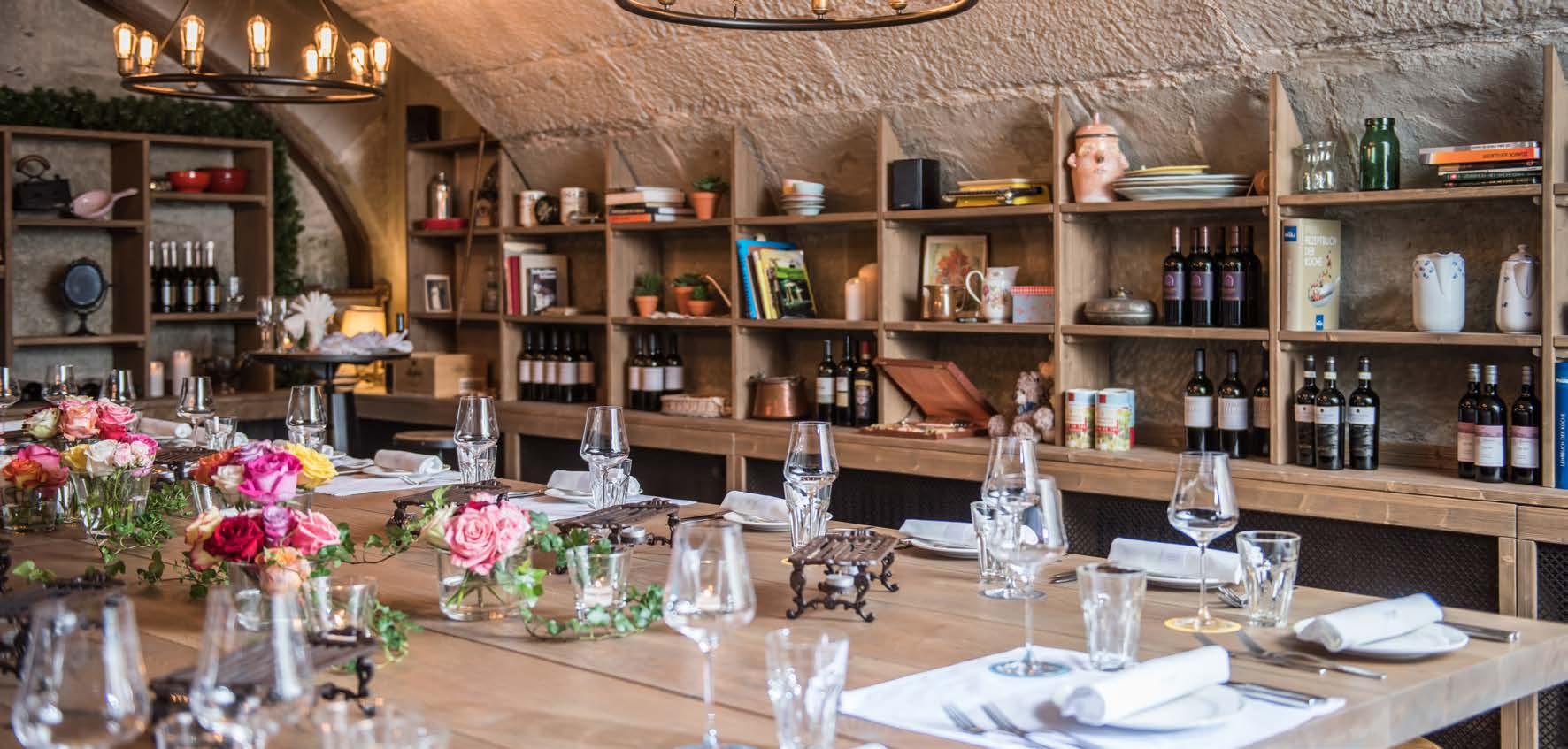 Aufgetischt werden feines lokales Essen in 5 Gängen, hervorragende Weine, Mineralwasser, Espresso und Schnaps – alles à discrétion im Preis von CHF 120.– inbegriffen.