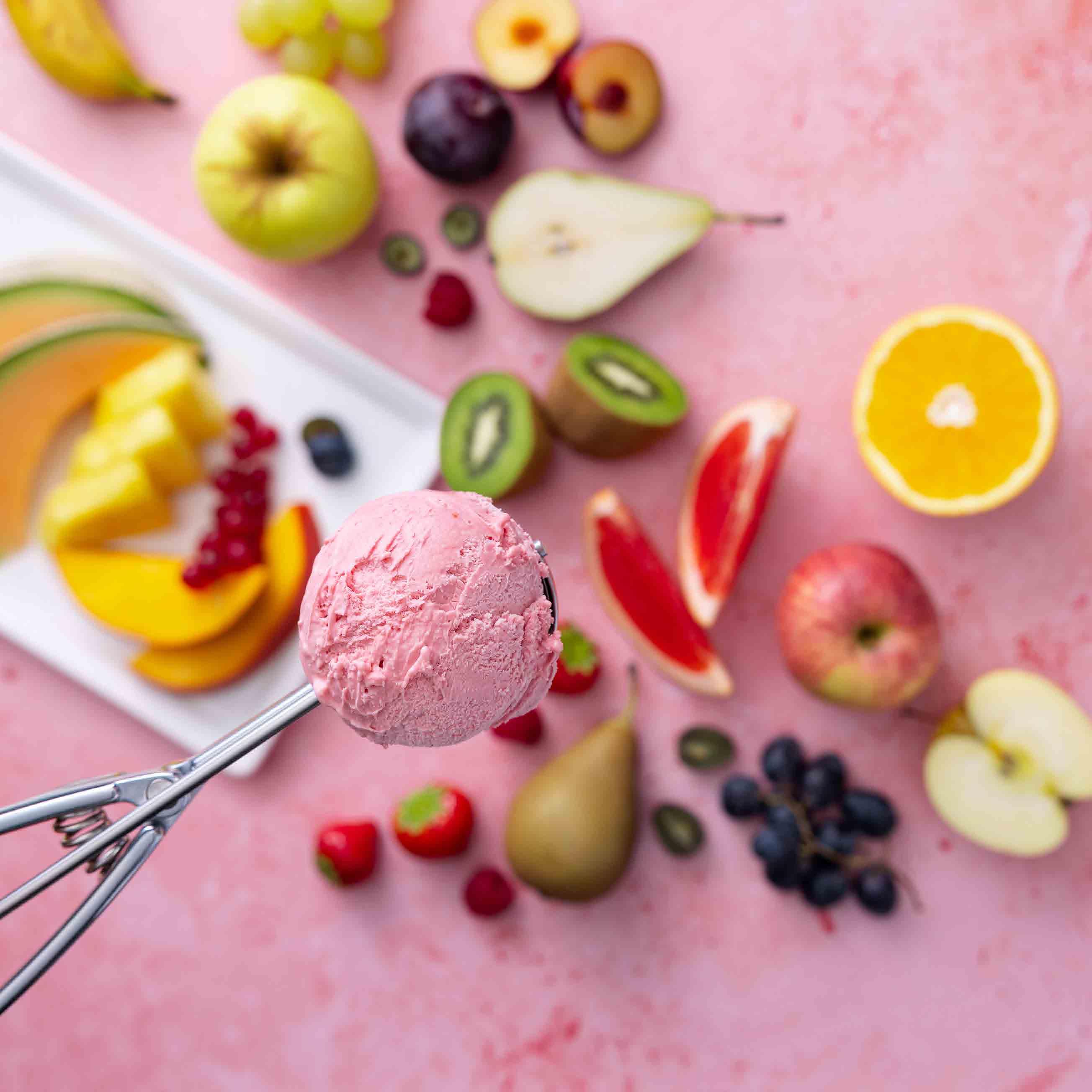 Tutti Frutti • frisch aufgeschnittene, saisonale Früchte, 1 Kugel Glace nach Wahl | 16.50