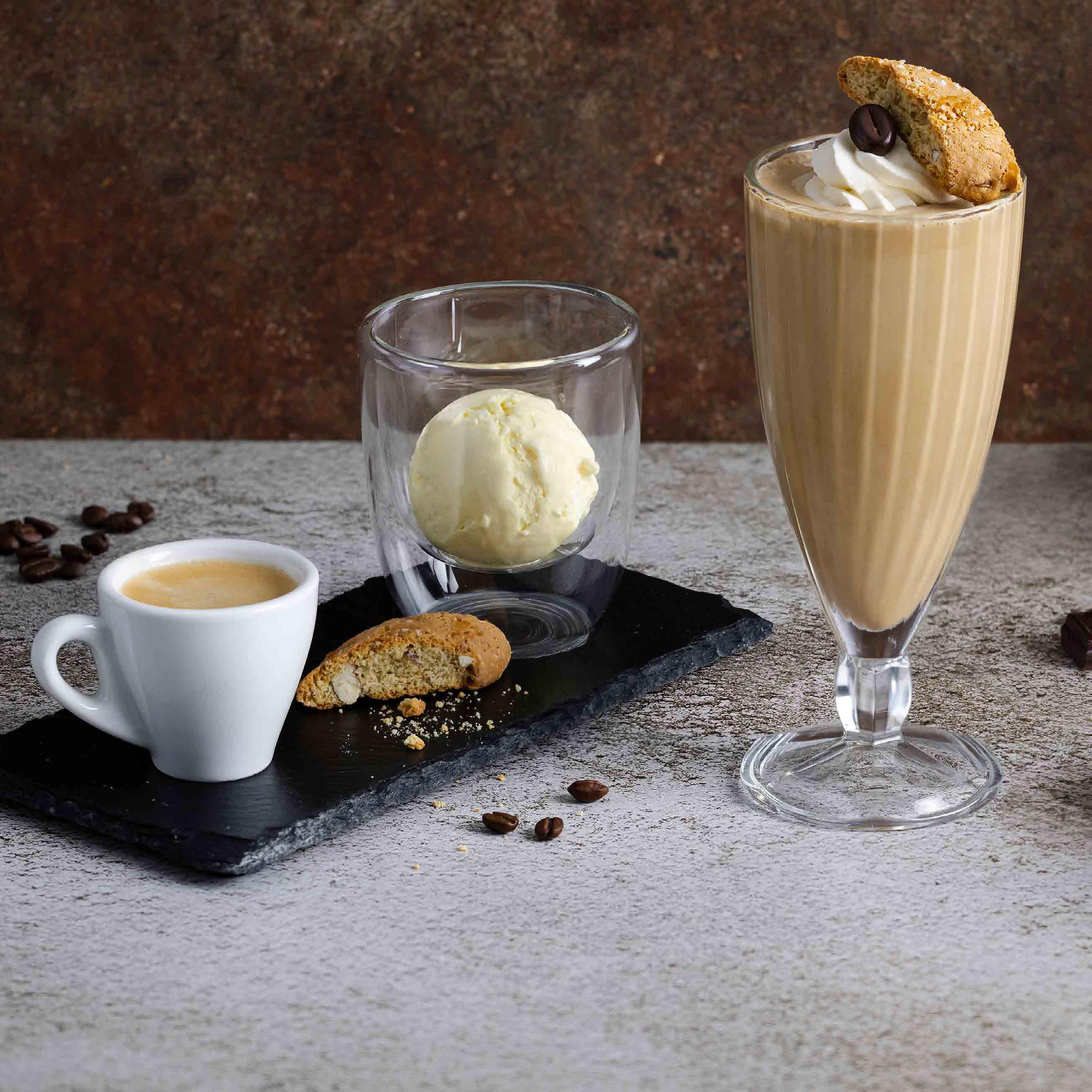 Affogato al Caffè Caffè freddo Affogato al Caffè • Vanilleglace, Espresso, Cantucci | 9.50 Caffè freddo • Kaffeeglace, Schlagrahm, Cantucci 12.90 | mit Kirsch 14.50