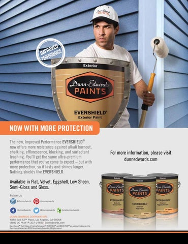 DUNN-EDWARDS CORPORATION 4885 East 52ND Place, Los Angeles, CA 90058 (888) DE PAINT® (337-2468) | dunnedwards.com Dunn-Edwards®, The #1 Choice of Painting Professionals®, EVERSHIELD®, and (888) DE PAINT® are registered trademarks of the Dunn-Edwards Corporation. ©2018 Dunn-Edwards Corporation. All rights reserved.