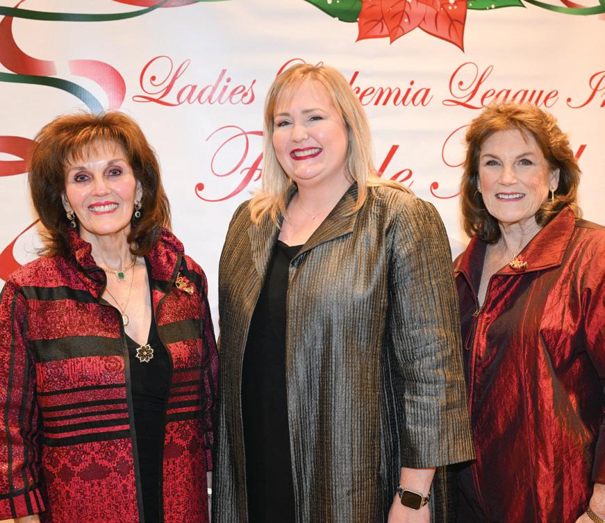 (L-R) Jeanne Charlebois, Karen Boudreaux and Joanna Sternberg gather with other JLNO Sustainers and friends at the home of Virginia Weinmann for our annual Mint Julep event to celebrate the JLNO 2024 Sustainer of the Year, Kathy Eastman. Photo by Allie Shapiro Dandry