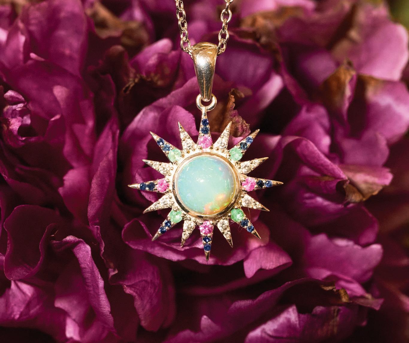Who needs fireworks on the 4th when you can wear this gorgeous celestial sparkler from Cristy Cali's Cosmic Collection? The El Sol Divino necklace features a mesmerizing Ethiopian Opal. Crafted in 18k gold vermeil, this stunning pendant is also adorned with emeralds, zircon and pink and blue sapphires, symbolizing universal connection. Available through Cristy Cali Jewelry, cristycali.com, @christycalijewelry.