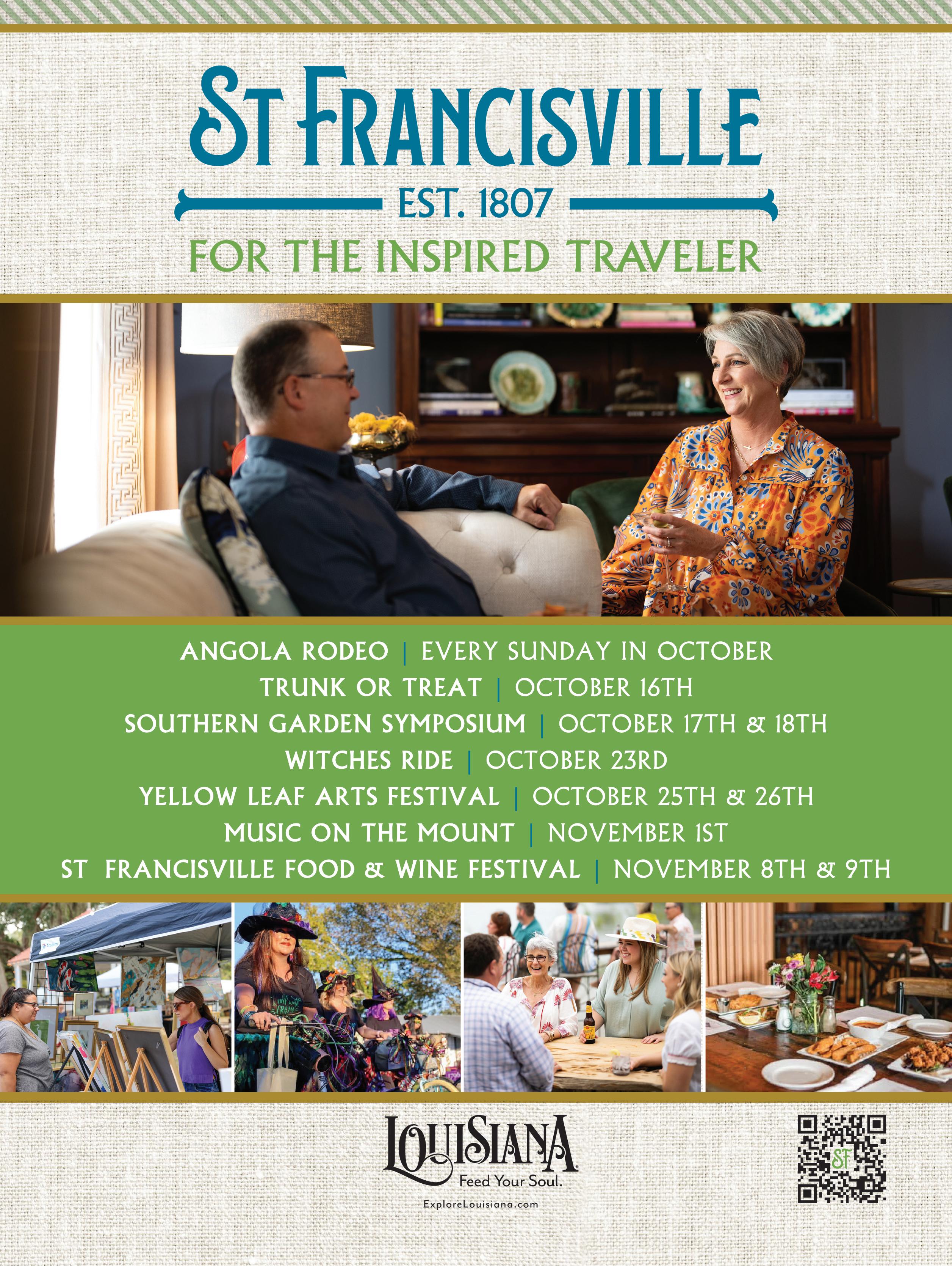 If you’re in the mood to try a new cocktail, Lisa Leblanc-Berry shares a recipe from 531 Liberty Café, which should get you in fall mode. It’s a banana nut oldfashioned, and it sounds delicious. Here’s to a wonderful night out with a cool breeze and a delicious meal that can only mean Louisiana in the fall. Cheers!