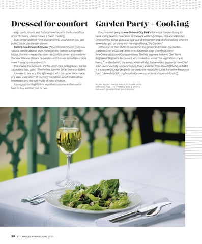 If you missed going to New Orleans City Park’s Botanical Garden during its peak spring season, no worries as the park will bring it to you. Botanical Garden Director Paul Soniat gives a virtual tour of the garden and all of its beauty, while he serenades you on piano with his original song, “My Garden.” At the start of the COVID-19 pandemic, the garden’s Kitchen in the Garden started a Chef’s Cooking Series on its Facebook page (Facebook.com/ NewOrleansBotanicalGarden/videos). The first segment featured Chef Frank Brigtsen of Brigtsen’s Restaurant, who cooked up some Thai vegetable curry at home. The idea behind the series, which will also feature video segments from Chef John Currence (City Grocery, Oxford, Miss.) and Chef Ryan Prewitt (Pêche), is that it is a way to encourage people to donate to the Hospitality Cares Pandemic Response Fund (UnitedWaySela.org/hospitality-cares-pandemic-response-fund-0).