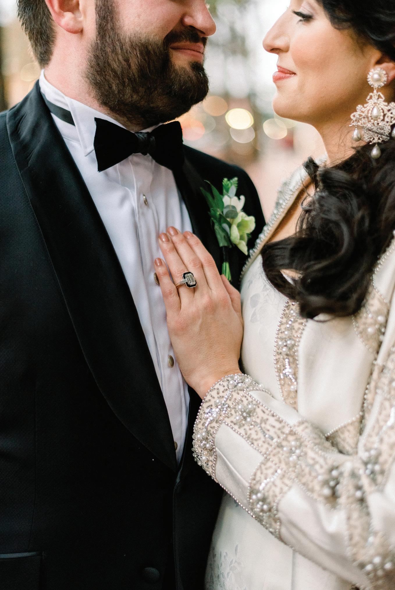 – By Megan HoltReception Décor: Firefly Ambience, Element Event Rentals, See Hear Pro Coordinator: Elyse Jennings Weddings Celebrant: Rabbi Edward Cohn Wedding Gown: Carolina Herrera, Neiman Marcus Dallas, evening coat vintage, red dress Safiyaa Groom’s Attire: Tuxedo, Indochino Engagement Ring: Beje Fine Jewelry Bride’s Wedding Band: Beje Fine Jewelry Groom’s Wedding Band: Beje Fine Jewelry Florist: Bella Blooms Invitation: Empress Stationery Wedding Cake: Bittersweet Confections Photographer: Lance Nicole Videographer: Shotgun Films Hair and Makeup: Kelly Snesrud
