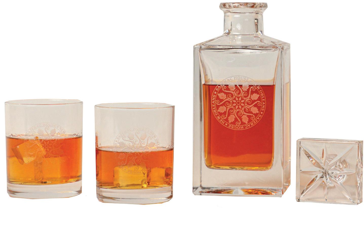 Crystal Decanter and Glass Set. Three-piece set featuring a Crystal Decanter and two crystal glasses, $150.