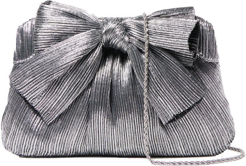 The chicest way to soiree, the Rayne satin pleated bow frame clutch is crafted with intricate hand-pleated fabric and comes accompanied by a twisted dainty chain and Loeffler Randall's signa ture knotted bow accent. Saks Fifth Avenue, 301 Canal St., 504-524-2200, saksfifthavenue.com.