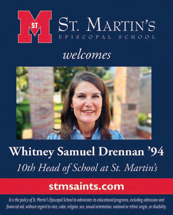 This year, St. Martin’s welcomes its 10th Head of School, Whitney Samuel Drennan ’94, the school’s first alum to serve as its head. Drennan returns to St. Martin’s after serving for more than 20 years at Louise S. McGehee School, where she was the Head of Lower School. Drennan holds a Bachelor’s degree, Cum Laude, in Early Childhood Education and Special Education Hearing Impairment and a Master’s of Education from the University of New Orleans. Learn more about St. Martin’s when you visit the beautiful 18-acre campus for a personal tour or attend an Open House. For more information or to schedule a personal tour, please call the Admission Office at 504-736-9917. Visit St. Martin’s on the web at stmsaints.com/admissions