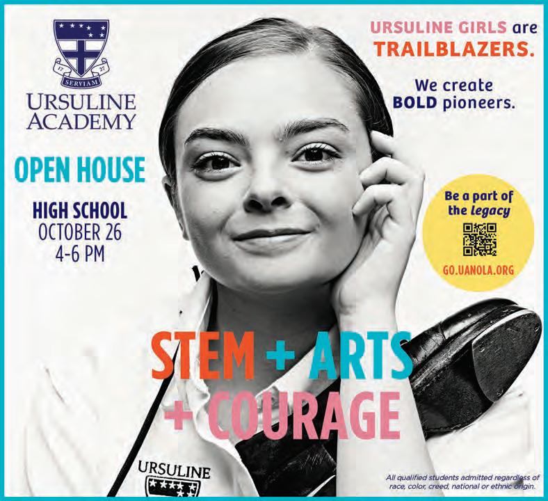 At Ursuline, students blaze their own trails—it’s the school’s legacy. Make it yours, too. Register for an open house at go.uanola.org. For more information, contact the Office of Admissions at 504-866-5292 or admissions@uanola.org.