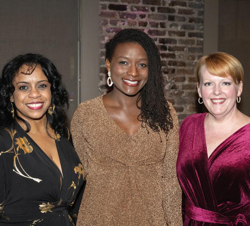 (L-R) Erica Washington, Lynn Spearman, and Melissa Nunn enjoy sips and shopping at the annual JLNO Holly Jolly Market where over 30 local vendors sell art, home décor, sweet treats and more. Photo by Delana Lynn Photography
