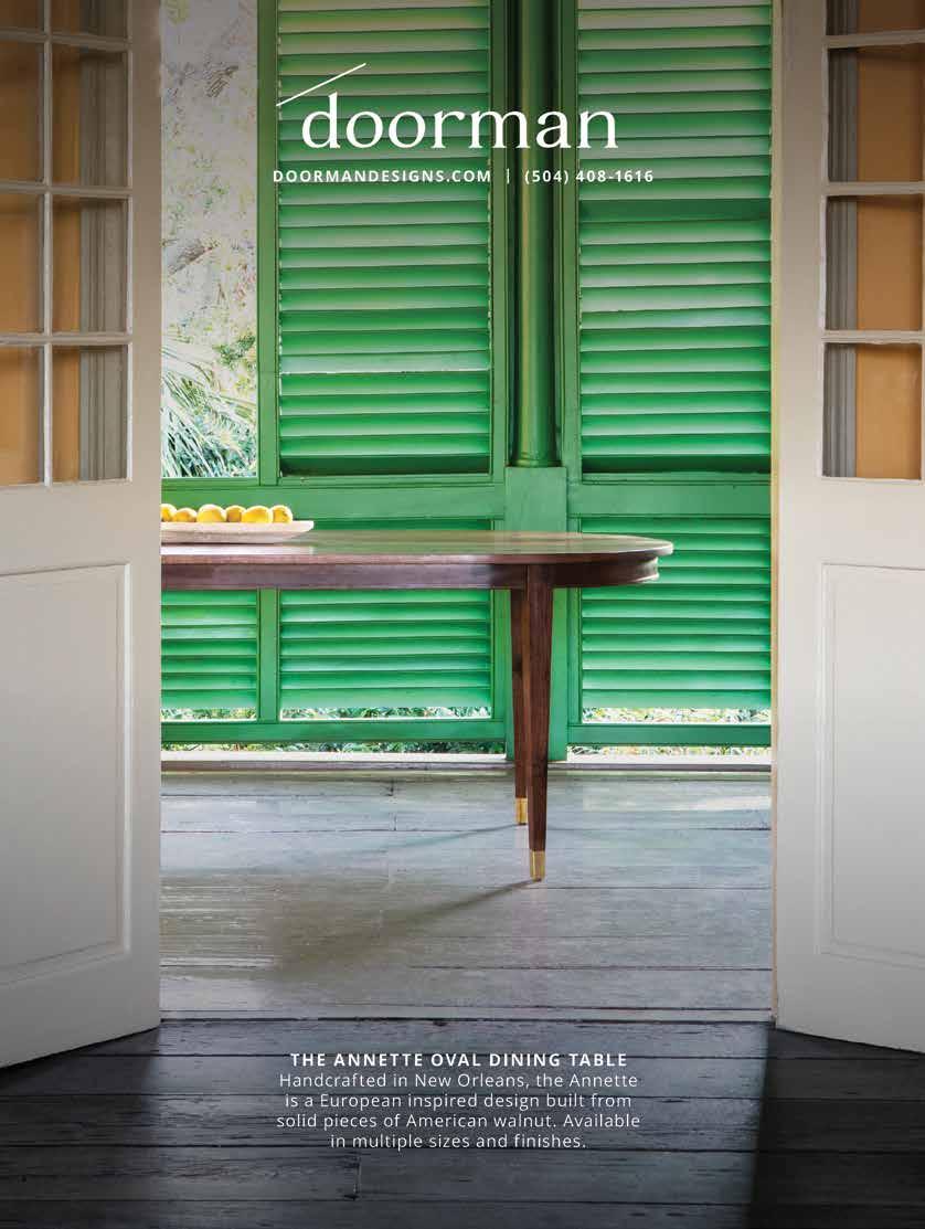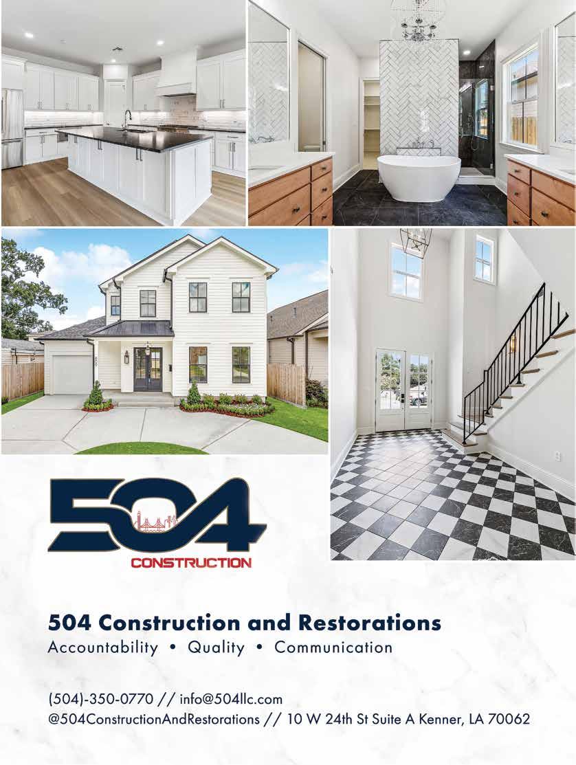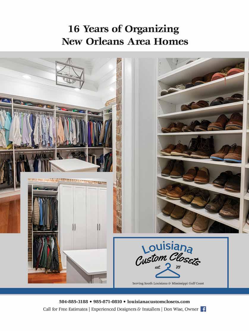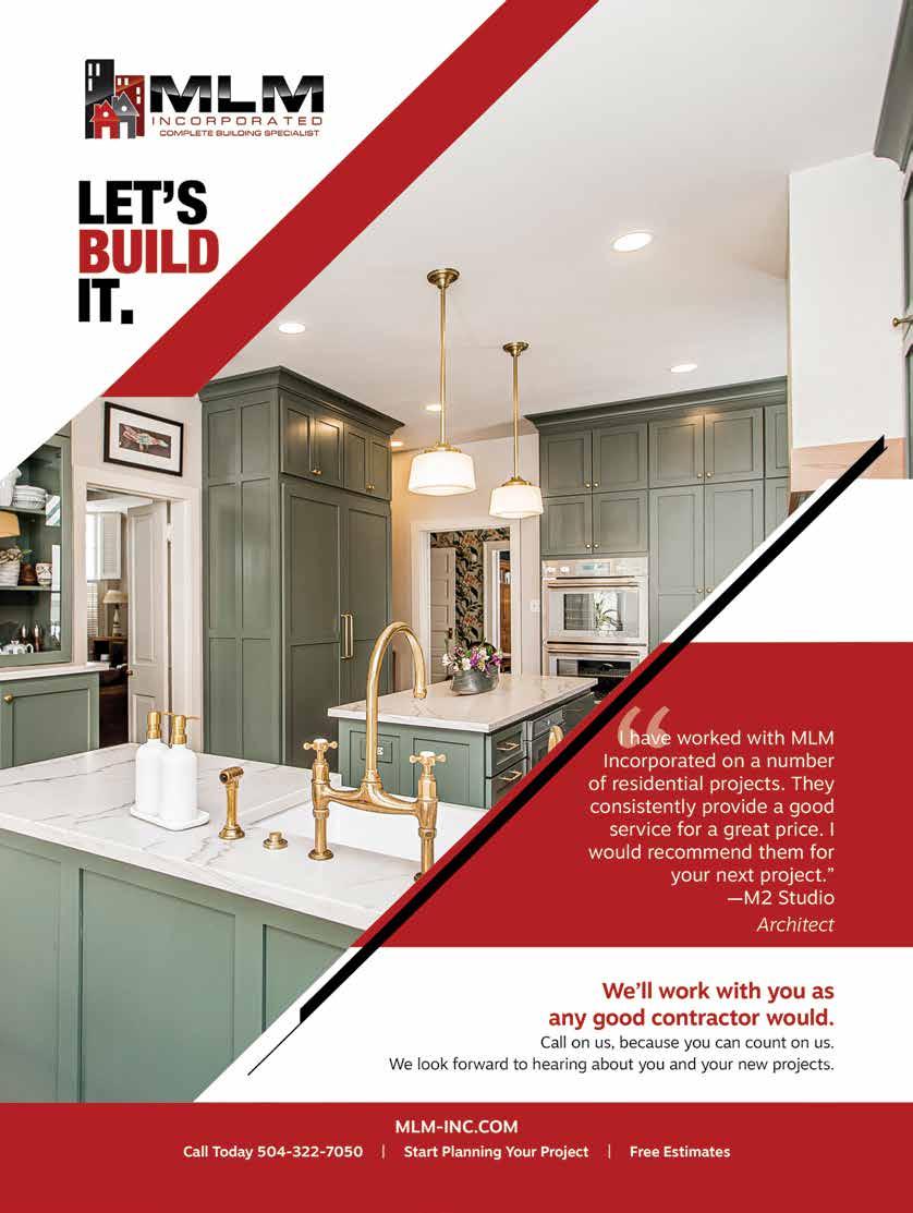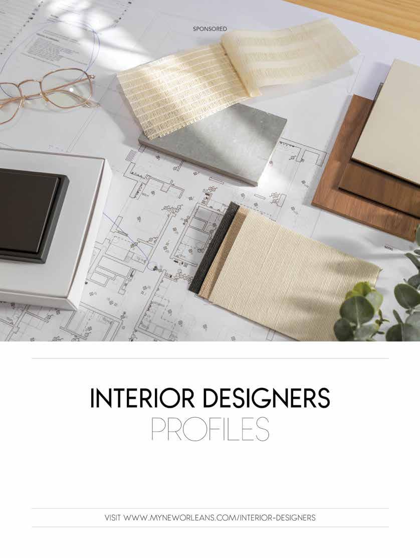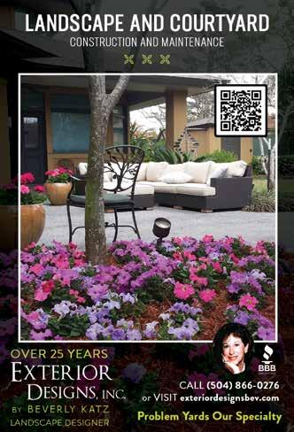 New Orleans Homes and Lifestyles, ISSN 1933-771X is distributed four times a year and published by Renaissance Publishing LLC, 110 Veterans Memorial Blvd., Suite 123, Metairie, LA 70005; (504) 828-1380. For a subscription visit on line at MyNewOrleans.com. Periodicals Postage Paid at Metairie LA and Additional Entry Offices. POSTMASTER: Send address changes to New Orleans Homes & Lifestyles, 110 Veterans Memorial Blvd., Suite 123, Metairie, LA 70005. Copyright © 2023 New Orleans Homes & Lifestyles. No part of this publication may be reproduced without the consent of the publisher. The trademark New Orleans Homes & Lifestyles Magazine is registered. New Orleans Homes & Lifestyles is not responsible for unsolicited manuscripts, photos and artwork even if accompanied by a self-addressed stamped envelope. The opinions expressed in New Orleans Homes & Lifestyles are those of the authors and do not necessarily reflect the view of the magazines’ managers or owners. AUTUMN 2023 / VOLUME 26 / ISSUE 4 48 68 26 24