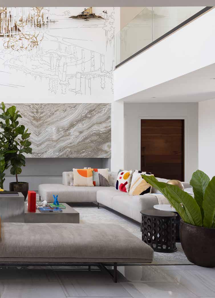 open concepts because you cover a lot of ground with impactful stone and stone-look detail. Of course neutrals are a mainstay, but metallic accents and some bolder earthy hues are making waves.”