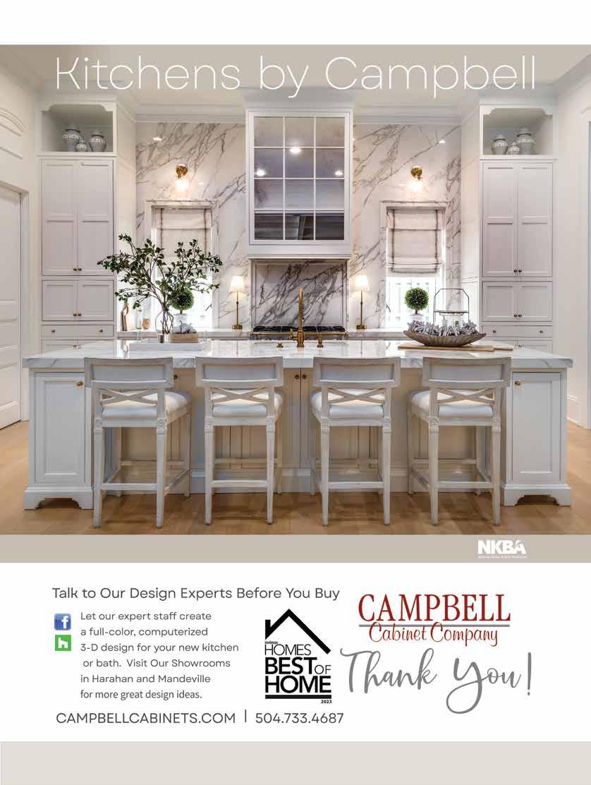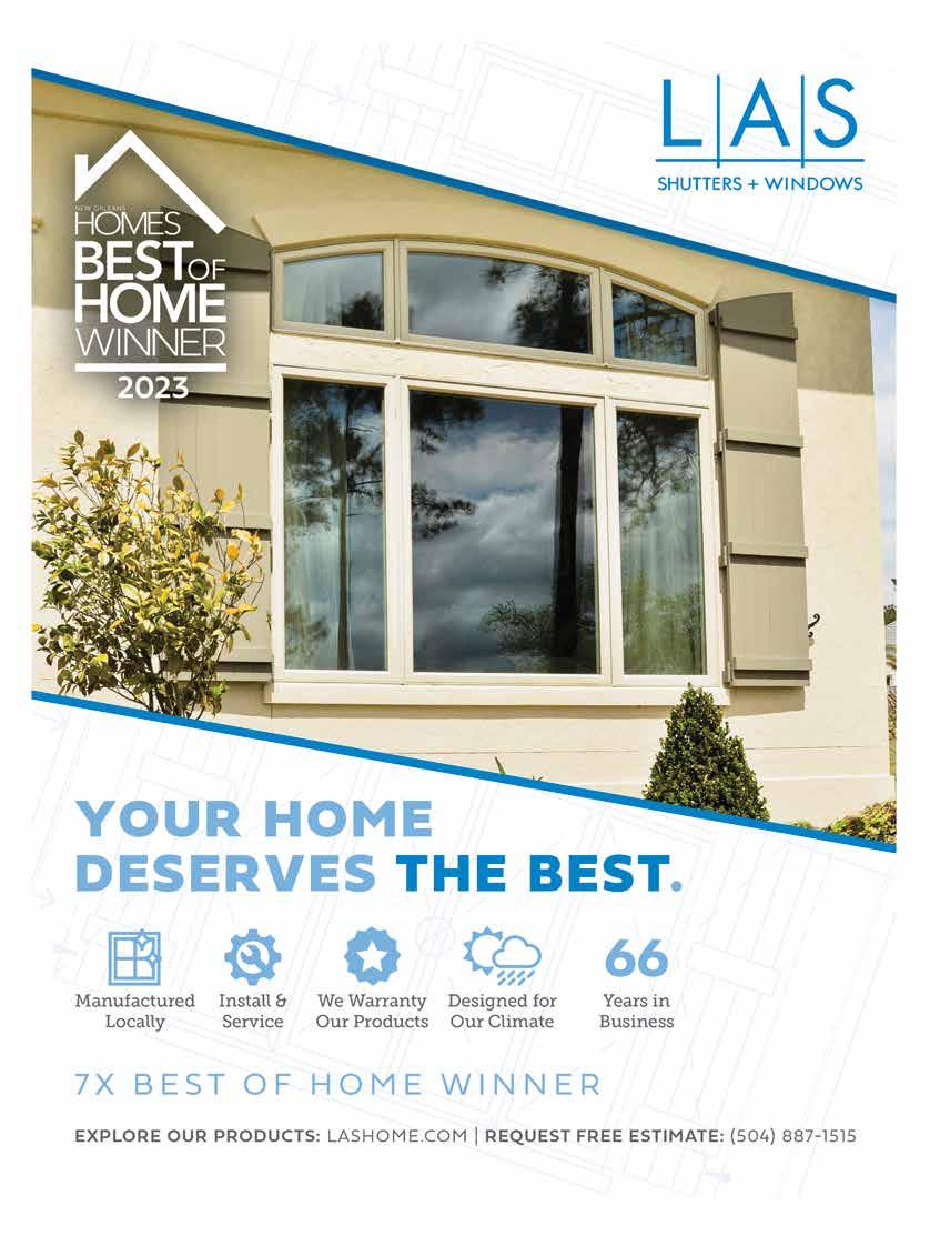EACH YEAR OUR READERS VOTE BY ONLINE BALLOT FOR THEIR FAVORITE HOME DESIGN INDUSTRY PROFESSIONALS IN NEW ORLEANS. THE BUSINESSES COVER THE SCOPE OF EVERYTHING HOMEOWNERS NEED TO MAKE AND MAINTAIN A BEAUTIFUL HOUSE AND HOME. YOUR VOTES HAVE BEEN TALLIED AND WE PRESENT THE 2023 BEST OF HOME WINNERS.