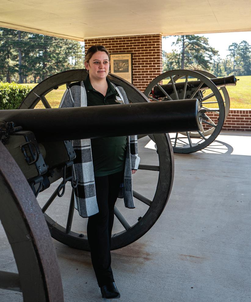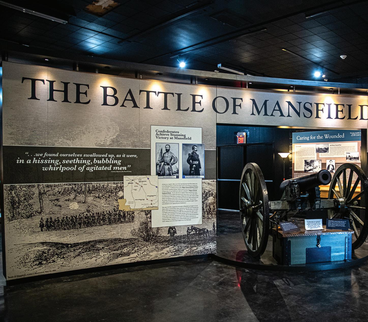 Visitors to the museum at Mansfield State Historic Site walk through a chronological history of the battle. Park Manager Amy Boone (left) organizes regular exhibits, film screenings, battle reenactments, and interpretive programs at the site. “We do everything we can to get the community involved,” she says. The museum also includes a marble mantle that decorated the East Room of the White House throughout the terms of presidents from Theodore Roosevelt to Harry S. Truman.