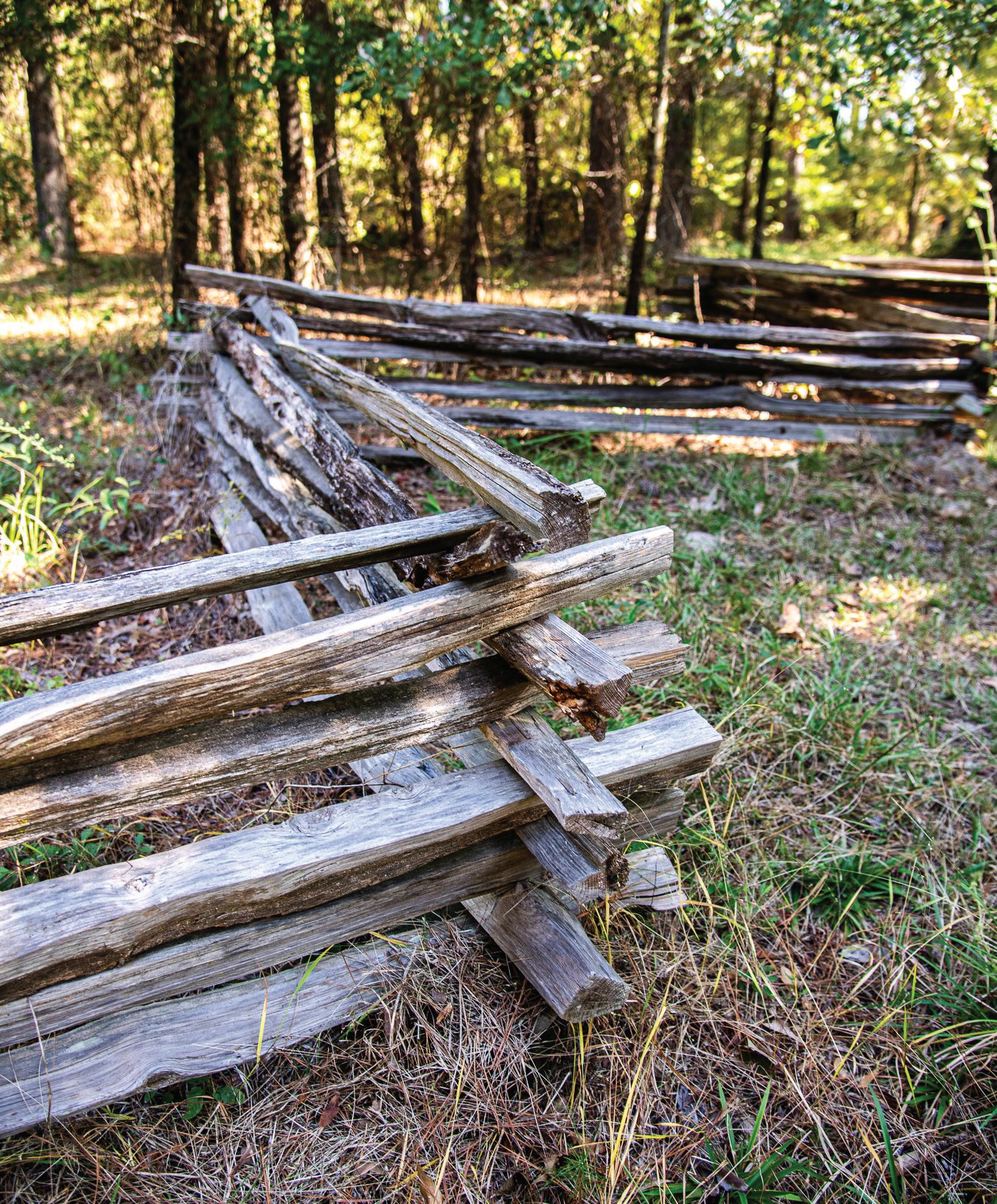 On April 8, 1864, Union and Confederate soldiers formed a battle line along a split-rail fence similar to this one at Honeycutt Hill. General Alfred Mouton died leading the attack. His monument rises among others at the entrance to the Mansfield State Historic Site.