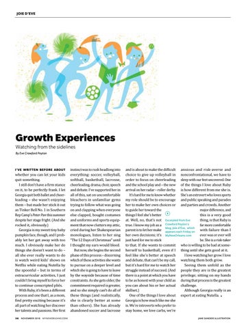 Growth Experiences Watching from the sidelines By Eve Crawford Peyton