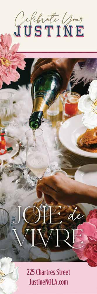 Local gem, Jewel of the South, won top honors at Tales of the Cocktail 2022, taking home two Spirited Awards. First, partner and bartender Chris Hannah, won the award for U.S. Bartender of the Year, earning recognition for having an influence on drink styles and cocktail culture—all while devel oping drinks recipes and working regularly behind the bar. Second, the Jewel of the South won Best U.S. Restaurant Bar, earning recognition as a restaurant bar that is dedi cated to creating a great cocktail experience for their dining guests. 1026 St. Louis St., 504.265.8816, jewelnola.com