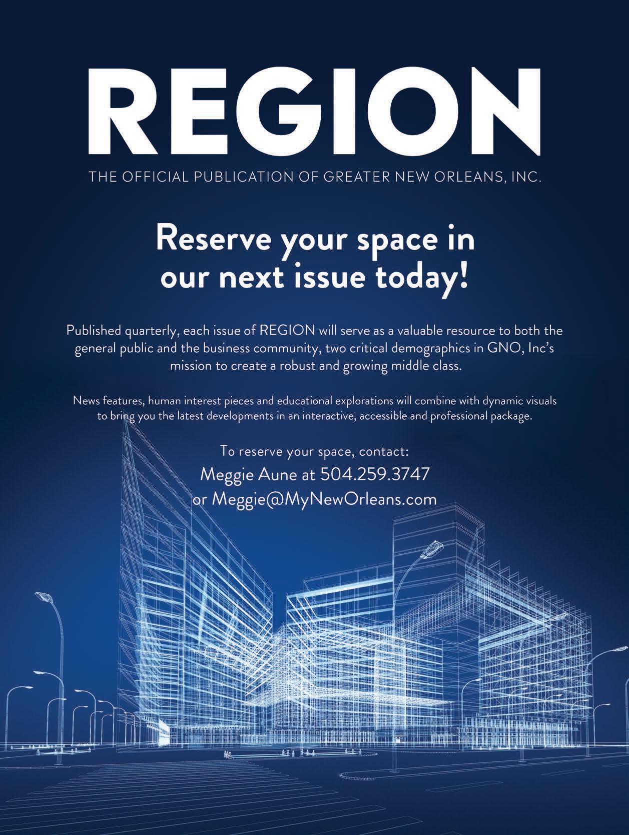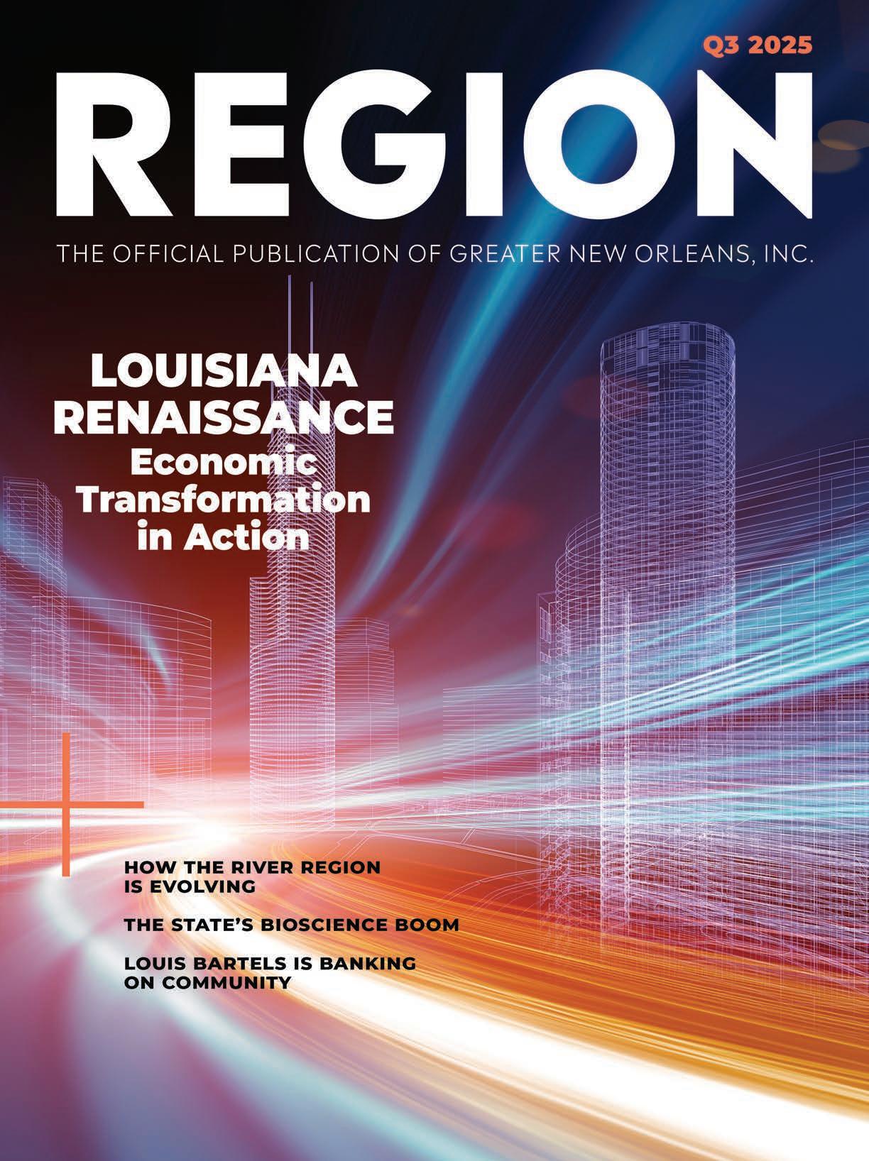 Welcome to the Q3 2025 issue of REGION Magazine! This season, we turn our focus to the communities, industries, and institutions that continue to propel Greater New Orleans forward—from the River Region to the BioDistrict, from high-level planning to boots-on-the-ground innovation.