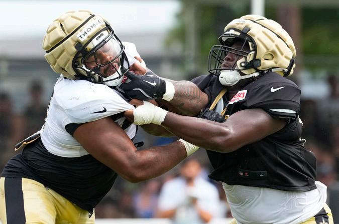 The 2025 version of the Saints is not only made up of relentless and goal-oriented returning players, but also di erence makers acquired through free agency and the draft to shake things up in the Big Easy. Some tenured veterans look to put the cherry on top of already fruitful NFL careers, like DE Cameron Jordan, LB Demario Davis and WR Brandin Cooks, who have a combined 38 years of productive experience. Other returning players like WRs Chris Olave and Rashid Shaheed, TE Juwan Johnson, LB Pete Werner and CB Alontae Taylor look to build o promising starts to their careers.