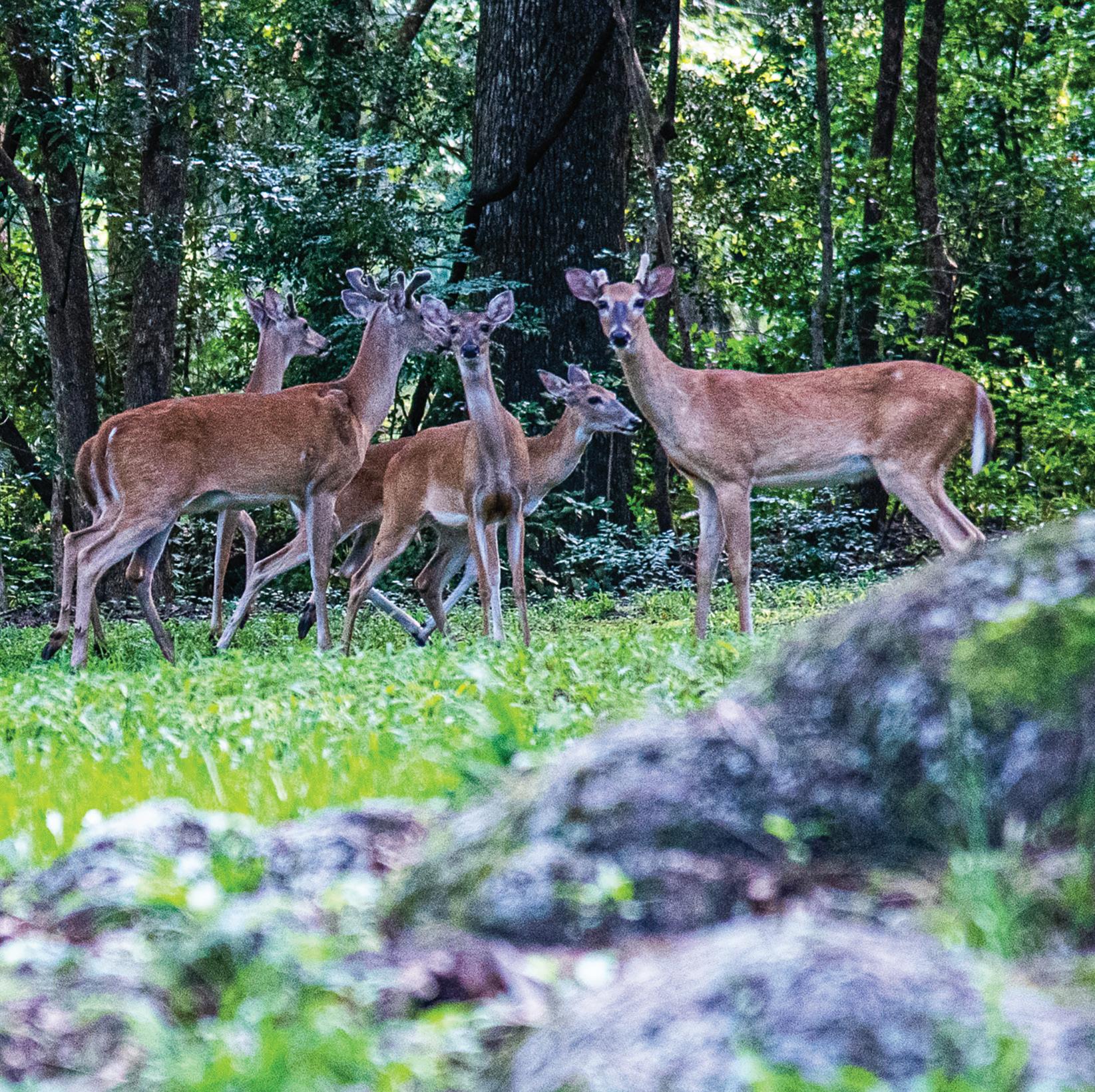 Besides providing home to six hundred varieties of plants, including a wide range of camellias and azaleas, and hundreds of species of resident and migratory birds, the Jungle Gardens on Avery Island offer a safe haven to white-tailed deer, alligators, nutria, racoons, bobcats, and other wildlife.