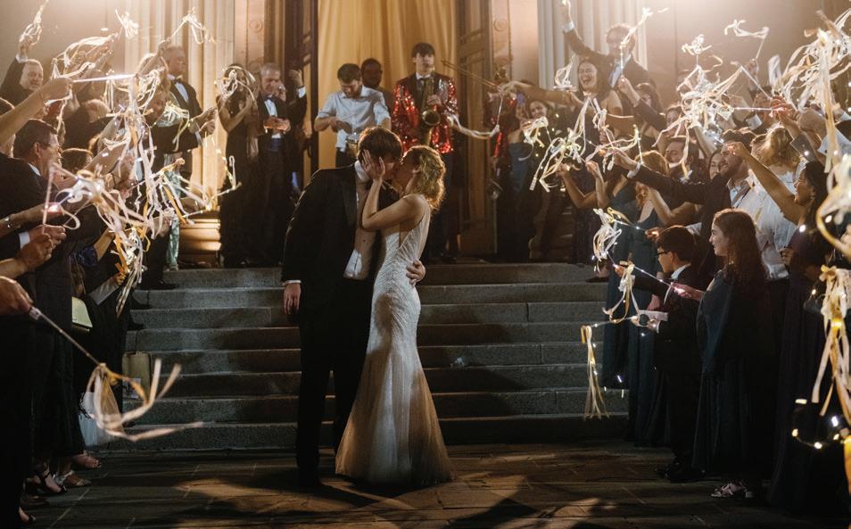 natural, organic touches, Caroline and Hugh chose the “Bee’s Knees” as their specialty cocktail. The magical feeling created by the theme set the tone for the newlyweds’ first dance to Neil Young’s “Harvest Moon.” Caroline often thought of this song when she first realized she was falling in love with Hugh, and it has become especially meaningful for them over the years. The couple also chose to celebrate love and lasting marriage with an “anniversary dance,” inviting all married couples to the dance