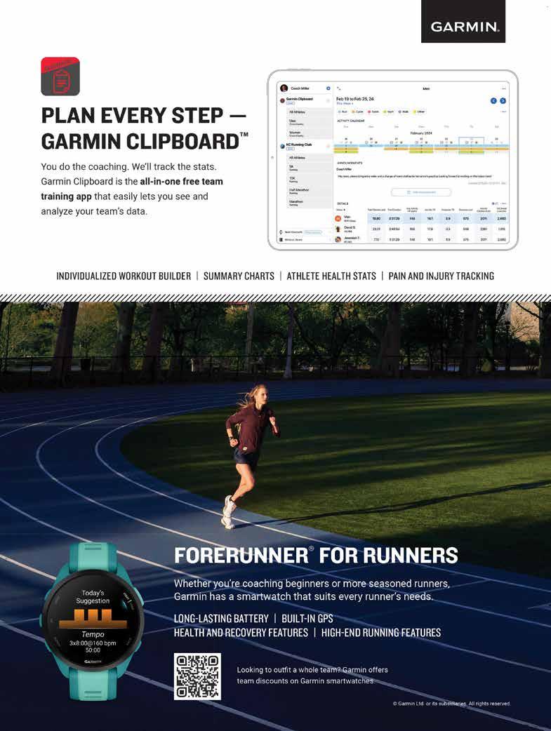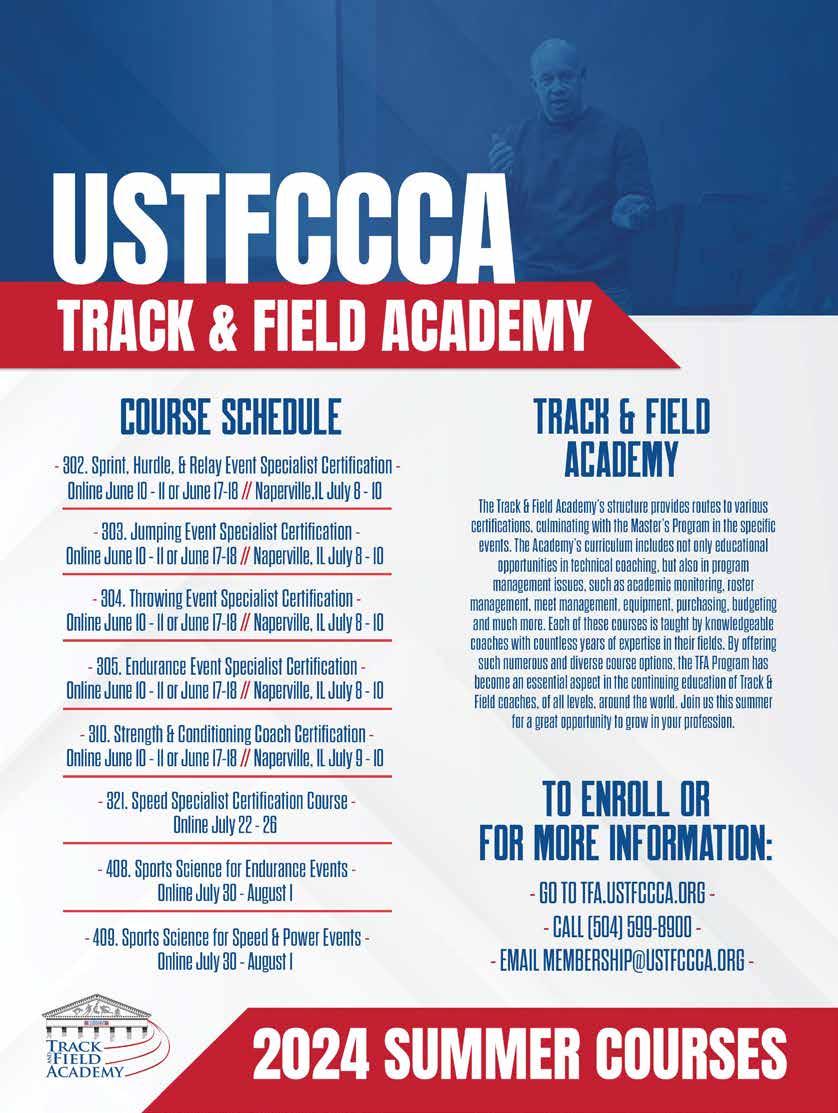 PUBLISHED BY Renaissance Publishing LLC 110 Veterans Memorial Blvd., Suite 123, Metairie, LA 70005 (504) 828-1380 myneworleans.com USTFCCCA National Office 1100 Poydras Street, Suite 1750 New Orleans, LA 70163 Phone: 504-599-8900 Website: ustfccca.org If you would like to submit content for, or advertise your business in Techniques, please contact 504-599-8906 or techniques@ustfccca.org. Techniques (ISSN 1939-3849) is published quarterly in February, May, August and November by the U.S. Track & Field and Cross Country Coaches Association. Copyright 2024. All rights reserved. No part of this publication may be reproduced in any manner, in whole or in part, without the permission of the publisher. techniques is not responsible for unsolicited manuscripts, photos and artwork even if accompanied by a self-addressed stamped envelope. The opinions expressed in techniques are those of the authors and do not necessarily reflect the view of the magazines’ managers or owners. Periodical Postage Paid at New Orleans La and Additional Entry Offices. POSTMASTER: Send address changes to: USTFCCCA, PO Box 55969, Metairie, LA 70055-5969.