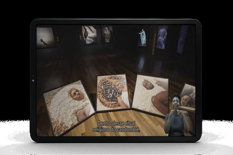 O artista foi convidado para guiar o visitante na imersão virtual . O tour 360º da exposição conta com o depoimento de Ayrson Heráclito, que permite aprofundar assuntos como processos de criação, história de elementos utilizados e significados das obras capturadas pelo vídeo.