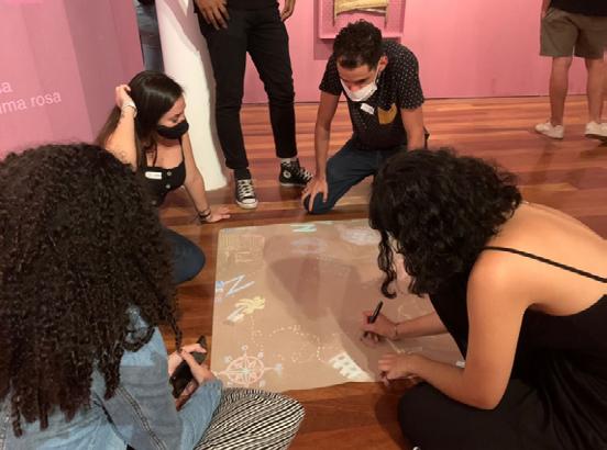 com acompanhamento pedagógico e sessões de processamento da experiência vivida. Eles se tornam, de certa forma, donos do museu, empoderados para falar de arte e cultura desde suas perspectivas individuais e situadas desde a periferia, mas entendendo a sua formação como um exercício democrático mais amplo.
