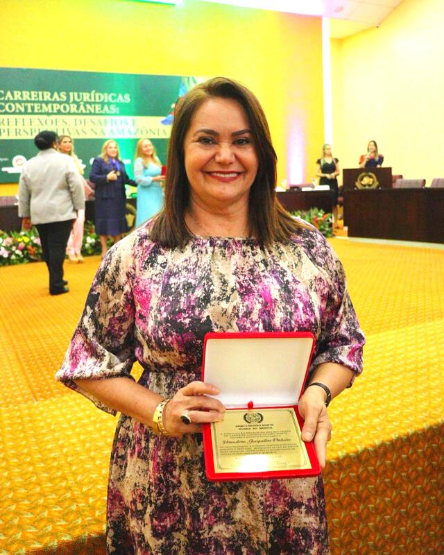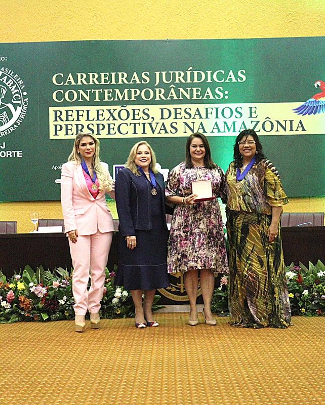A honraria foi entregue pela coordenadora regional e conselheira federal da OAB, Maria Glaucia Soares Barbosa, a juíza de direito e vicepresidente de honra da ABMCJ Nacional Lídia de Abreu Carvalho e a presidente da federação internacional das mulheres de carreira Jurídica e ABMCJ Nacional Manoela Gonçalves Silva.