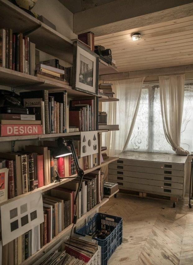 O cenário do personagem de Matheus Nachtergaele tem um ar mais rústico, inspirado na arquitetura dos prédios do bairro Santa Teresa, mas também com a arte como foco. O sobrado é decorado com pilhas de livros, objetos antigos de valor afetivo e pôsteres de filmes – inclusive alguns de Domingos Oliveira. É onde ele lê, ouve música, recebe seus melhores amigos e filosofa sobre a vida e sobre o amor.