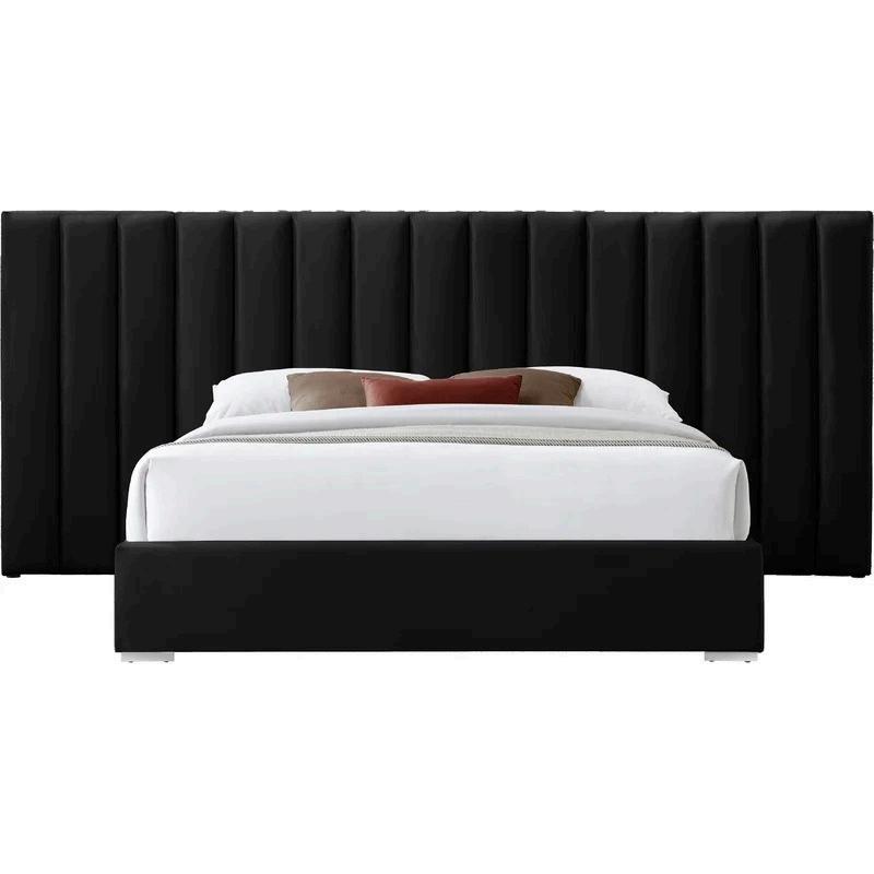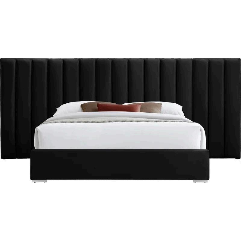 CHANNEL VERTICAL BED WITH EXTENDED HEADBOARD | BLACK VELVET