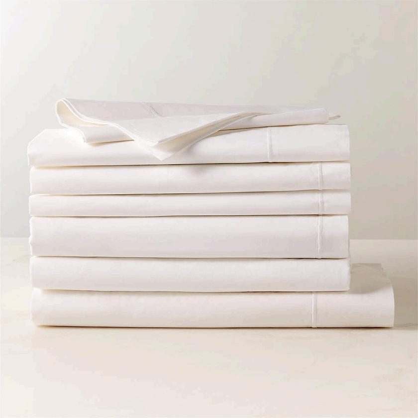 10. COTTON PERCALE WHITE BAND DUVET & SHEET SEET | KING In white