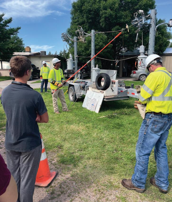 Left: Employees of Dawson Public Power District provide a high voltage safety demonstration to campers. Photographs by Wayne Price