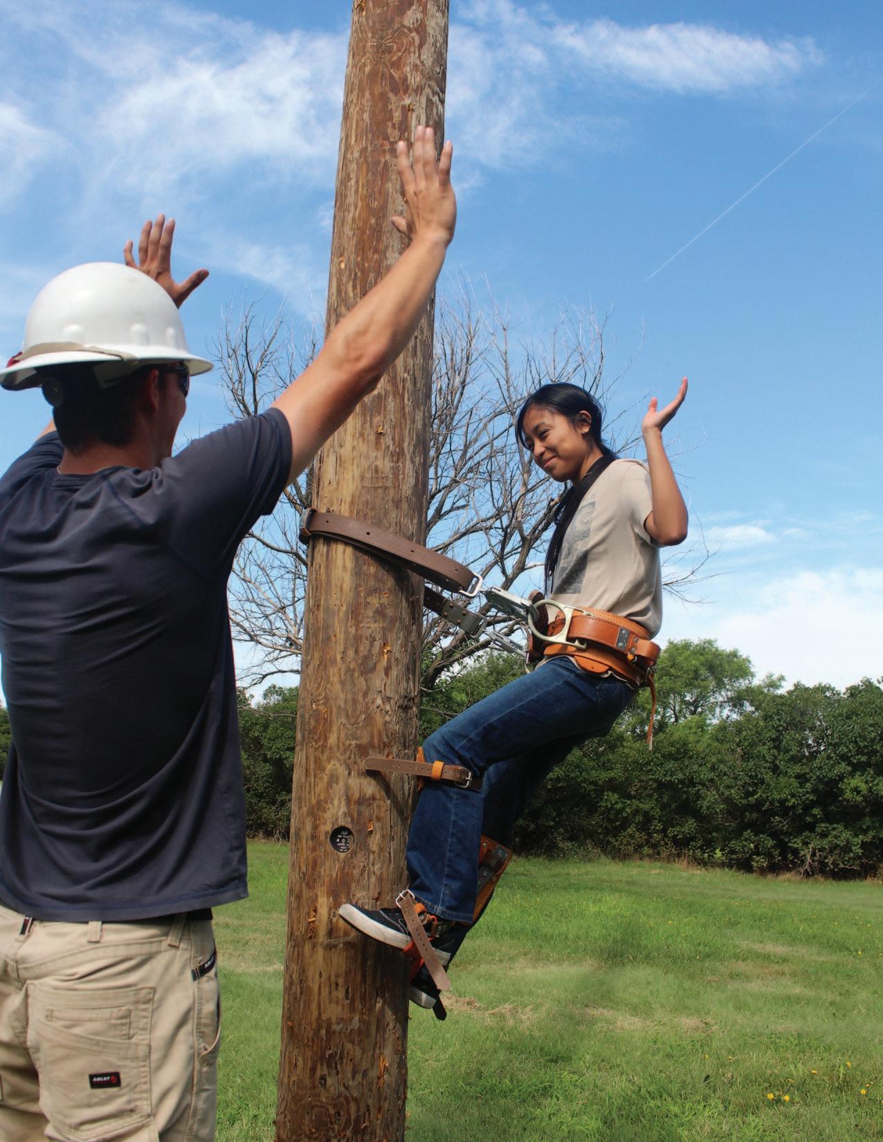 Pole climbing is just one of the educational activities students get to participate in during Youth Energy Leadership Camp. See the related article on Page 6. Photograph by Wayne Price