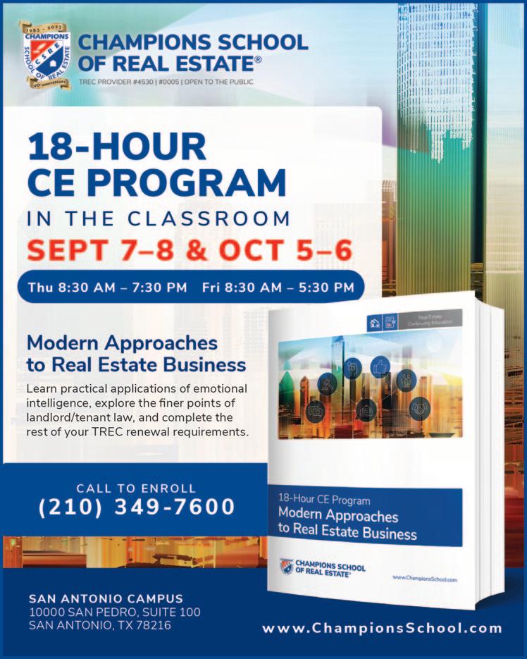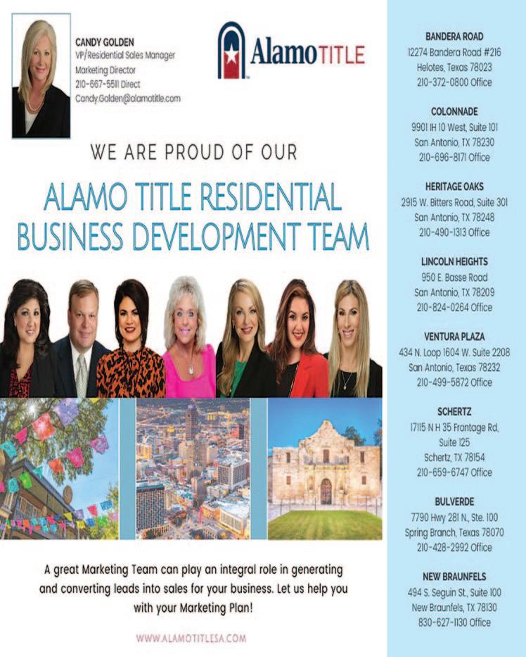 PRSRT STD U.S. Postage PAID San Antonio, Texas Permit #1416 S E R V I N G S O U T H T E X A S A N D S U R R O U N D I N G A R E A S F O R 4 0 Y E A R S Vol.XLI, No. 9 www.realestatenewsline.com September 2023