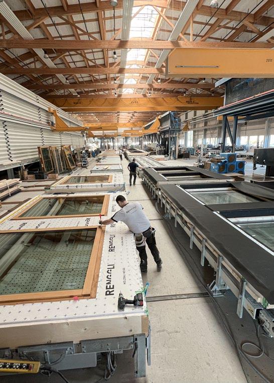 L’efficacité est particulièrement importante dans la production de constructions en bois étant donné que de nombreux éléments identiques sont préfabriqués pour les grands bâtiments, par exemple. Des processus structurés de manière cohérente permettent ainsi une fabrication industrielle au plus haut niveau. Des éléments de construction sont réalisés avec une précision exceptionnelle dans une usine moderne dotée de machines automatisées et disposant d’une équipe bien formée et rodée.