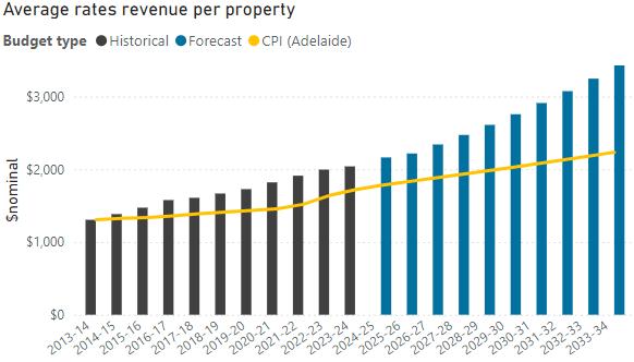 The Council has forecast an increase of 5.6 percent per annum on average in rate revenue for the period from 2024-25 to 2033-34 (excluding statutory and user charges and reimbursements)