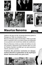 Il a mené une vie exceptionnelle, révolutionné son domaine, changé l’histoire de la mode en France, participé à tous les mouvements culturels du contemporain et réalisé des chefs-d’œuvre admirés par des générations de personnes partout dans le monde... Maurice Renoma mérite d’être au centre des projecteurs, à travers une rétrospective inédite consacrée à sa vie et sa carrière.