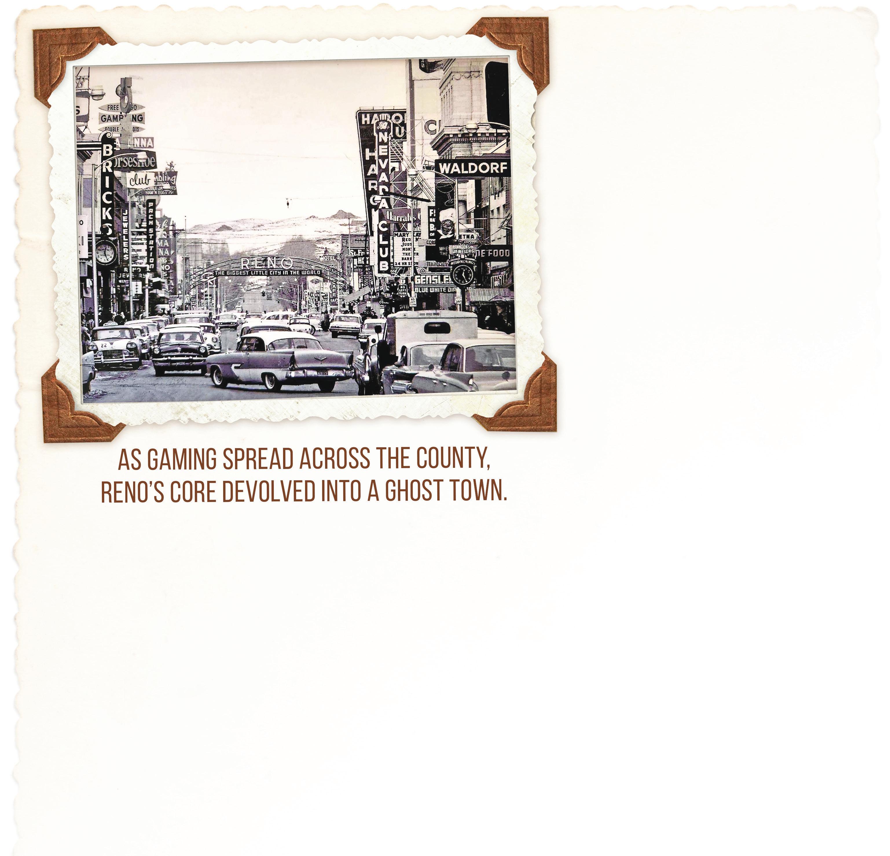But it is foot traffic, not more concrete pads, that will renew downtown. There must be street-side shops, bars, restaurants and stores there next to the massive hotel-casinos. Renewal depends on a diversity of people, businesses and buildings—and a web of human connections—amid a streetscape reflecting Reno’s character, quality and continuity.