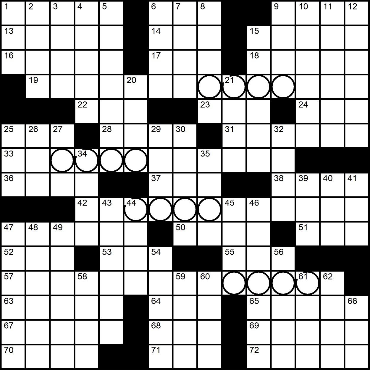 RenoNR.com | January 2023 | RN&R | 29 | BY MATT JONES JONESIN' CROSSWORD “Capital Letters”— some big names here. By Matt Jones Across 1. Optimal 6. Common undergrad degrees 9. Mandlikova of ’80s tennis 13. Actress Thomas involved with St. Jude Children’s Research Hospital 14. Glass Onion: A Knives ___ Mystery 15. Palindromic Quebec university 16. Currently playing 17. Minecraft substance 18. Striped giraffe relative 19. “No, start with the second Japanese ‘thank you’”? 22. Barcelona aunt 23. Xmas quaff 24. Comedian Wong 25. Inordinately long time 28. Little ___ of Horrors 31. Game that gets its name from “four” 33. Sharing battle between Quantum Leap star Scott and family? 36. Fiery gemstone 37. Rodrigo y Gabriela, e.g. 38. Grief-stricken cry 42. Eighteen-wheeler obstructing freeway traffic, say? 47. Leisurely walk 50. “Bearing gifts we traverse ___” 51. Late NHL star LaFleur 52. Abu Dhabi’s gp. 53. Wagner opera Rheingold 55. Part of UNLV 57. Run-down version of a basic two-dish pasta meal? 63. Album’s first half 64. Kendrick Lamar’s Grammy category 65. Prom conveyances 67. Record in a log 68. Notable time 69. Shorten by a letter or two 70. Pop star Celine 71. Get married to 72. Kidney-related Down 1. “As I see it,” for short 2. “Consarn it!” 3. Cube designer Rubik 4. Floating 5. With little at stake 6. Dynamite sound 7. Paranormal field 8. Rear admiral’s rear 9. Ceremonial Maori dance 10. Film with an upcoming The Way of Water sequel 11. City in southern Italia 12. Cover stories 15. Subject of the History Channel’s Ax Men, e.g. 20. Hawaii Five-O setting 21. Letter after theta 25. “Foucault’s Pendulum” author Umberto 26. Alley ___ (comic strip which, thanks to the recent Charles Schulz tributes, I learned still exists) 27. Its finals are usually in June 29. Former automaker, briefly 30. “Where Have All the Cowboys Gone?” singer Cole 32. Ruler before 1917 34. Saxophone range 35. Canine comment 39. Haul 40. Prefix for puncture 41. Astronomer