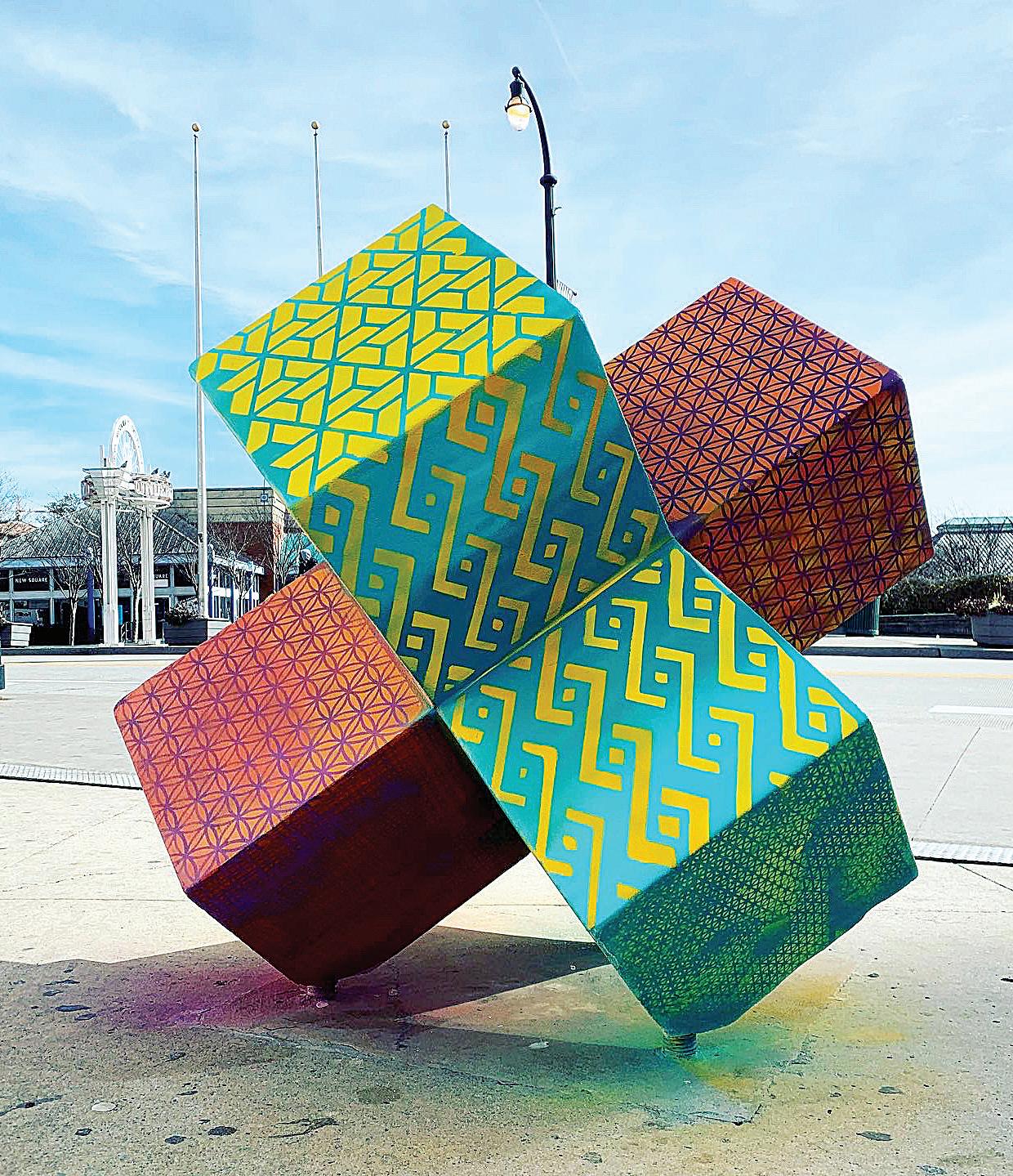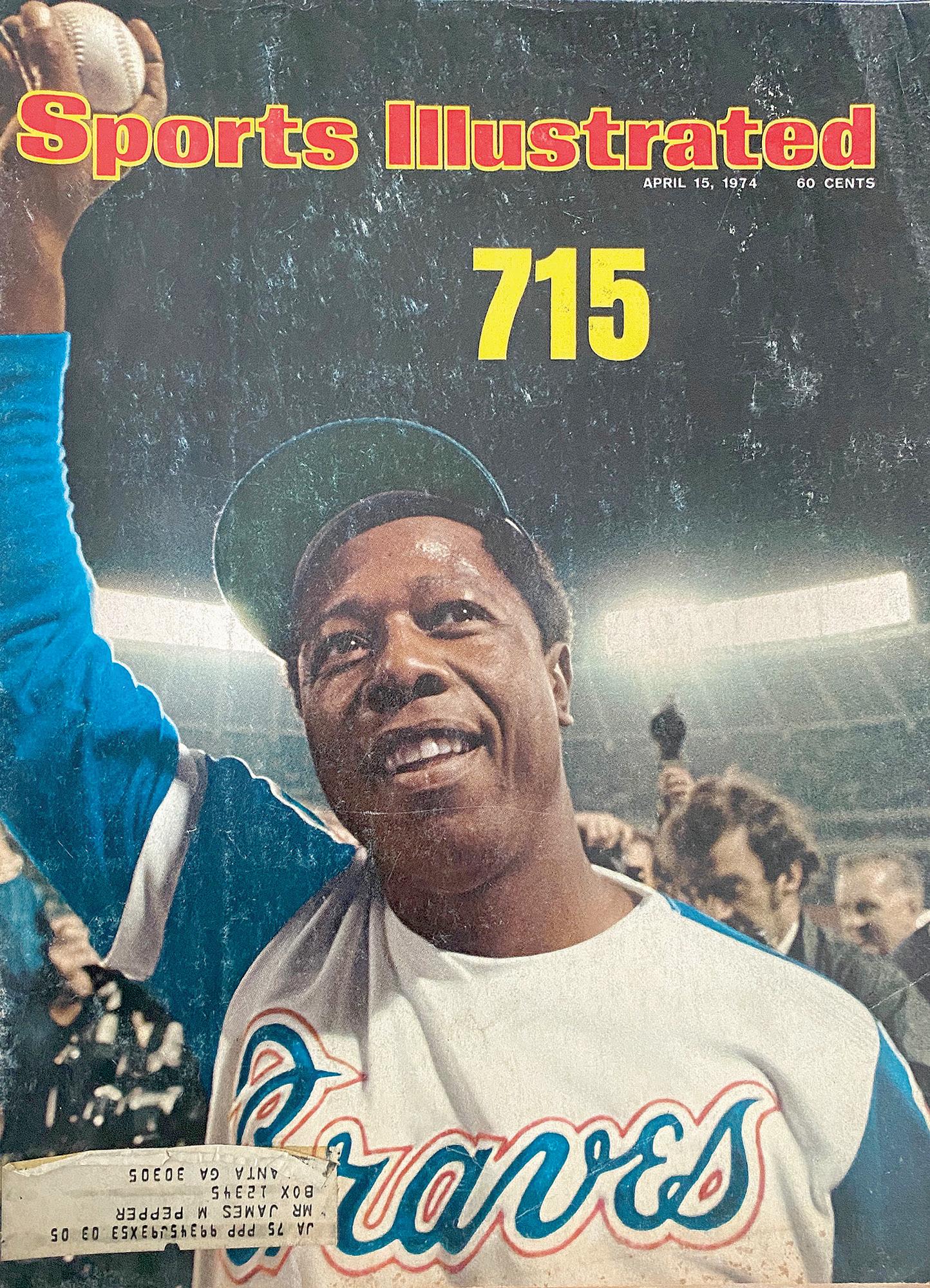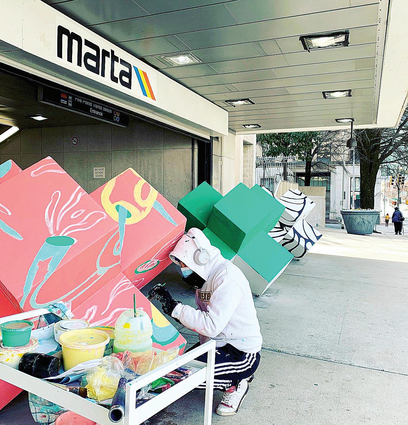 CLOCKWISE FROM TOP LEFT: The April 15, 1974 edition of Sports Illustrated celebrating the late Hank Aaron’s record-breaking home run as a member of the Atlanta Braves; Sculptor Dorothy Berge’s “Sabine Woman,” originally commissioned in 1968 for Colony Squre, will have a permanent new home at Arts District Plaza at 15th and Peachtree in Midtown; MARTA’s Artbound project saw artists Jenevieve Reed, Many Dey, Krista Jones, and Angie Jerez (pictured) painting traffic barriers outside the Five Points Station.