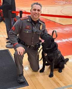 EPPD badge on Angel. “It was a pleasure to host Chief A.J. today,” East Providence Police Chief Christopher Francesconi said. “After being sworn in, he held his very first staff meeting where he met members of his command staff, toured the police station, saw K9 Okki in action, spent time with our BCI Detectives, members of our Special Reaction Team and much more.”