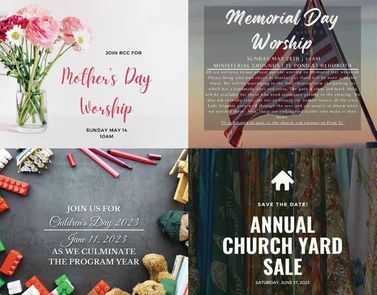 to be a really fun evening with dinner ($10 donation), music, a photo booth and smore’s by Fireman Randy, just to name a few. Watch out for the June addition of the Rehoboth Reporter for more information!